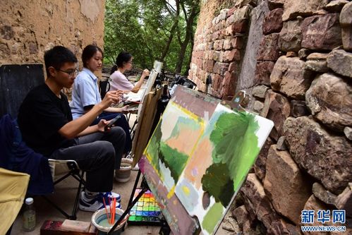 ↑7月3日,来自河南郑州的学生在林州市石板岩镇写生。新华社记者朱祥摄